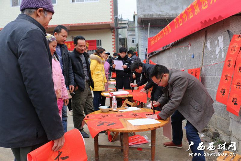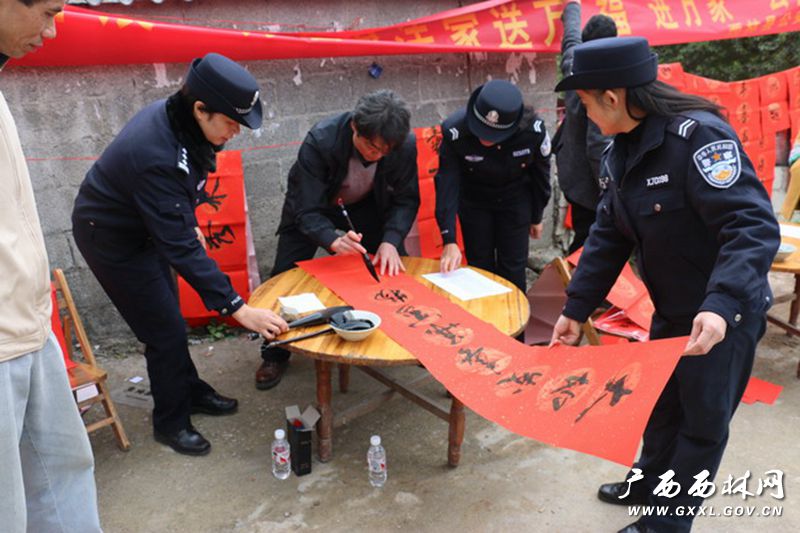 1月14日,西林縣公安局聯(lián)合縣文聯(lián)組織西林縣書(shū)法界的書(shū)法家、書(shū)法家志愿者服務(wù)隊(duì)及部分民警書(shū)法愛(ài)好者共21人一起下鄉(xiāng),開(kāi)展“萬(wàn)名書(shū)法家送‘!M(jìn)萬(wàn)家”活動(dòng),為村民群眾寫(xiě)春聯(lián)、送“!,贏得群眾好評(píng)。 當(dāng)日上午8時(shí),該局分管指揮中心的局領(lǐng)導(dǎo)許愛(ài)秋率110指揮中心部分民警、協(xié)警會(huì)同縣文聯(lián)書(shū)法家協(xié)會(huì)的書(shū)法家們,冒著嚴(yán)寒到普合苗族鄉(xiāng)大河村為村民們寫(xiě)春聯(lián)、送“!弊。參加活動(dòng)的書(shū)法家們充分發(fā)揮自己的書(shū)法特長(zhǎng),積極為群眾服務(wù)。村民們興高采烈,有的一家要求寫(xiě)5、6副對(duì)聯(lián)。他們說(shuō):如今黨和國(guó)家的政策好了,自己建起了幾層小洋樓,春節(jié)快到了,今天有書(shū)法家來(lái)為他們寫(xiě)對(duì)聯(lián)、有公安民警送“!眮(lái)家,多貼幾副春聯(lián)、多貼幾個(gè)“福”字,讓2017年春節(jié)更喜慶。一位年長(zhǎng)的大爺更是不亦樂(lè)乎,他樂(lè)呵呵的來(lái)到書(shū)法家岑斌面前,要求岑斌為自己寫(xiě)6副春聯(lián):“我家三層樓,每層兩個(gè)門(mén)口,我要寫(xiě)6副……”在開(kāi)展此項(xiàng)活動(dòng)中,民警、協(xié)警們除了主動(dòng)為村民們寫(xiě)春聯(lián)、送“!弊,他們靈活機(jī)動(dòng),在下鄉(xiāng)來(lái)回的路上,堅(jiān)持遇到過(guò)往群眾就送春聯(lián)和送“!弊,盡量讓更多的人受益。 據(jù)統(tǒng)計(jì),參加活動(dòng)的同志當(dāng)天共為村民群眾寫(xiě)春聯(lián)、送春聯(lián)306副、送“福”字418個(gè)。 |