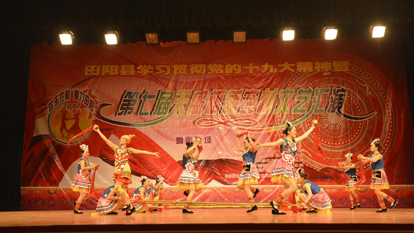 在全面貫徹落實(shí)黨的十九大精神、堅(jiān)決打贏精準(zhǔn)脫貧攻堅(jiān)戰(zhàn)、全面建成小康社會(huì)的熱潮中,12月26日晚七點(diǎn)半在田陽縣布洛陀文化中心大會(huì)堂,由縣委、縣政府主辦的第七屆天盛杯“歡樂農(nóng)村·魅力田陽”新農(nóng)村文藝匯演隆重開幕。 第七屆新農(nóng)村文藝匯演頭場(chǎng)晚會(huì)為舞蹈專場(chǎng)鄉(xiāng)鎮(zhèn)組比賽,每個(gè)節(jié)目都各有特色,以各自不同的創(chuàng)作風(fēng)格,體現(xiàn)不一樣的民族風(fēng)情,謳歌了祖國(guó)改革開放以來農(nóng)村建設(shè)取得的巨大成就,群眾的獲得感與幸福感不斷增強(qiáng)。整場(chǎng)演出精彩紛呈,臺(tái)下觀眾熱情高漲。 本屆新農(nóng)村文藝匯演持續(xù)時(shí)間從2017年12月下旬至2018年2月上旬,分為舞蹈專場(chǎng)、曲藝專場(chǎng)、聲樂專場(chǎng)、原生態(tài)山歌專場(chǎng)、民族團(tuán)結(jié)專場(chǎng)以及2017年迎春暨第七屆天盛杯“歡樂農(nóng)村·魅力田陽”新農(nóng)村文藝匯演頒獎(jiǎng)晚會(huì),歡迎廣大群眾到場(chǎng)觀看。 |