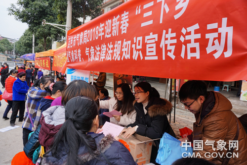 百色市氣象局在右江區(qū)陽圩鎮(zhèn)廣場開展氣象科普宣傳活動。劉中花 攝影 中國氣象報通訊員陳詠梅報道 2月1日,廣西壯族自治區(qū)百色市氣象局以參加“百色市做新時代‘紅色文藝輕騎兵’主題活動暨2018年迎新春‘三下鄉(xiāng)’集中活動”為契機(jī),在右江區(qū)陽圩鎮(zhèn)廣場宣傳氣象知識。 活動中,氣象工作人員布置了宣傳展板,設(shè)立和氣象服務(wù)咨詢臺,發(fā)放《氣象災(zāi)害防護(hù)指引》《氣象防災(zāi)減災(zāi)系列》《氣象災(zāi)害防御條例》等宣傳資料,采取“看得見、聽得懂、記得牢”等群眾喜聞樂見的宣傳方式,有針對性地把氣象科普知識、氣象法律法規(guī)知識、防雷科普知識傳遞給廣大群眾;顒舆設(shè)置了氣象知識有獎競答環(huán)節(jié),吸引廣大群眾積極參與,學(xué)習(xí)防災(zāi)減災(zāi)知識,提高防災(zāi)減災(zāi)意識。 |
