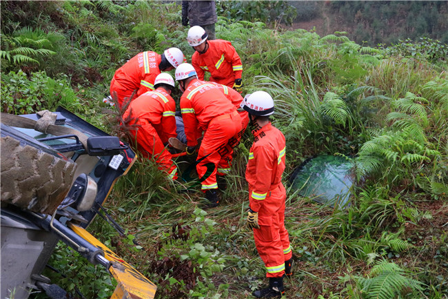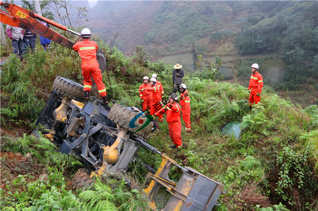 事故現(xiàn)場 12月28日14時(shí)55分,位于那坡縣那桑高速收費(fèi)站附近一鄉(xiāng)村道路上發(fā)生交通事故,一人被困。那坡中隊(duì)接到報(bào)警后,那坡縣消防中隊(duì)接到百色市消防支隊(duì)指揮中心調(diào)度后立即出動一個(gè)搶險(xiǎn)救援編隊(duì)前往事故現(xiàn)場處置。 緊張營救 15時(shí)20分,救援人員到達(dá)現(xiàn)場,120醫(yī)護(hù)人員已經(jīng)到達(dá)現(xiàn)場,F(xiàn)場發(fā)現(xiàn),一輛小型鏟車側(cè)翻在距路面4米高的地里,鏟車四輪朝天,駕駛室已被壓得嚴(yán)重變形,駕駛員就被卡在車內(nèi)動彈不得并經(jīng)醫(yī)護(hù)人員確認(rèn)已無生命跡象。指揮員立即下達(dá)救援指令,警戒人員負(fù)責(zé)現(xiàn)場警戒,救援小組迅速利用破拆工具嘗試破拆把被困人員救出,但由于鏟車自身過重呈傾斜狀態(tài),指揮員立即同現(xiàn)場負(fù)責(zé)人協(xié)調(diào),借助旁邊的一臺勾機(jī)協(xié)助將事故鏟車輕微抬起并固定好位置確保不會發(fā)生二次事故后立即展開實(shí)施破拆救助。經(jīng)過20分鐘的緊張救援,被困人員被救出并交于現(xiàn)場醫(yī)護(hù)人員。 抬出尸體該起事故致一人遇難。目前,事故具體原因正由相關(guān)部門調(diào)查當(dāng)中。消防部門提示:廣大駕駛員陰雨天氣謹(jǐn)慎駕駛,確保交通安全。 |
