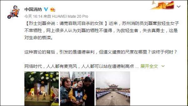 ![]() 據(jù)@中國消防 消息,近來,蘇州消防員劉磊營救輕生女子不幸犧牲,網(wǎng)上很多人認為劉磊的犧牲不值得,為救輕生者,失去真勇士,這是對生命的褻瀆。 這種言論的背后,引發(fā)的是道德審判,但道義譴責的尺度在哪里?該終于何時? 網(wǎng)絡時代,人人都有麥克風,人人都可以站在道德制高點,高舉正義、公平的旗子對他人的思想、行為進行評判。但當網(wǎng)民脫離虛擬網(wǎng)絡,在錯綜復雜的現(xiàn)實世界身臨其境時,是否也會犯下曾經(jīng)被自己在網(wǎng)上鄙視的錯誤? ![]() ![]() ![]() 劉磊在跳下水營救落水女子的那一刻,他肯定不會考慮應不應該、值不值得,只因落水者的名字叫群眾,而消防隊員的使命就是有警必出、聞警即動,奮戰(zhàn)在人民群眾最需要的地方。這就是劉磊的選擇,一名消防員的選擇,也是消防救援隊伍千千萬萬指戰(zhàn)員的選擇。這是對使命的信仰,這種信仰從來不會因為犧牲而放棄沖鋒!就像電影《救火英雄》中說的那樣:“我們救的不是火,是人,是生命。我很清楚指令,也明白做消防員,不該一命換一命。我們只是希望,能救一個是一個。” 年輕的英雄劉磊永遠離開了我們,像一只響箭,一往無前的出征,讓生命與使命同行。他的生命無價,他為群眾獻身、為使命獻身的壯舉無價。如今,斯人已逝,世人應將他的英名永傳,讓人性關懷有更多空間,而不是做無謂的價值比較。 落水女孩,也請你放下包袱,與過往道別,勇敢、積極的生活下去,黎明之際仍是黑暗,堅強的信念會讓你等到光明,無論生命有多灰暗,請?zhí)ь^看看天空中那抹靚麗的“火焰藍”!犧牲的消防員劉磊他會說,請珍惜我用生命換來的生機。 惟愿逝者安息,生者安康。 |