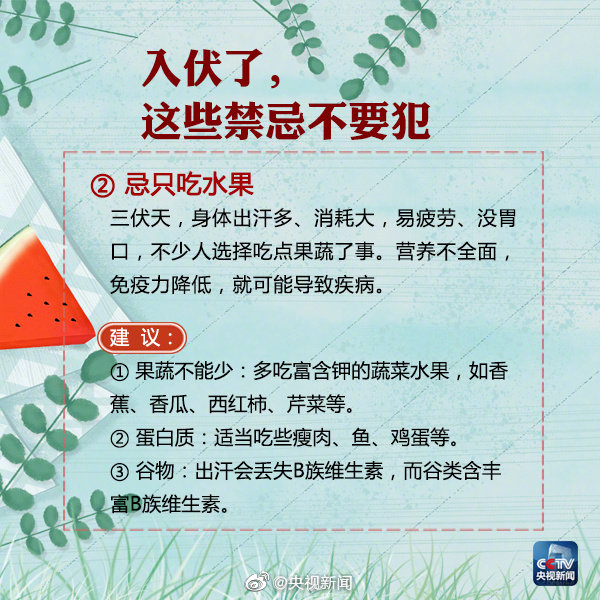 今年的“三伏天”,7月12日至7月21日為“初伏”,7月22日至8月10日為“中伏”,8月11日至8月20日為“末伏”,共計(jì)40天。 按農(nóng)歷計(jì)算,每年夏至后的第三個(gè)庚日入伏,立秋后的第二個(gè)庚日出伏。頭伏和末伏的長度是固定的,均為10天。中伏長度則由“立秋”節(jié)氣與其后首個(gè)庚日之間的間隔決定。 因此,中伏可能是10天,也可能是20天,對應(yīng)的就有30天的“普通版”三伏和40天的“豪華版”三伏。 7月12日開始進(jìn)入三伏天,“三伏天”是一年中最熱的時(shí)節(jié),今年還是“40天加長版三伏天”,大家注意做好防暑降溫措施的同時(shí),為健康,這9條禁忌不要犯! |