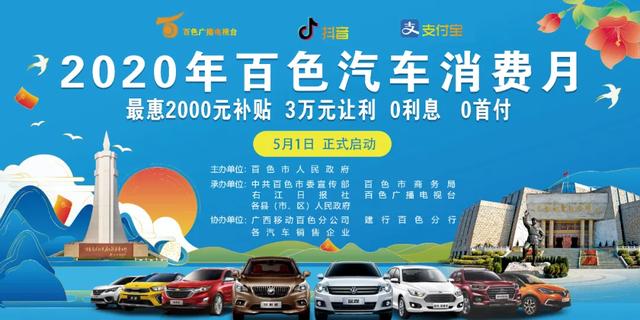 5月1日至30日,百色市人民政府主辦百色汽車消費(fèi)月活動,并于5月1日上午10:30,通過百色廣播電視臺、移動和商務(wù)平臺、抖音等平臺現(xiàn)場直播啟動儀式,市政府常務(wù)副市長將化身主播拉開活動月序幕,推出特惠車限時秒殺等多重驚喜為活動助興;顒悠陂g,購車消費(fèi)者最高可享2000元補(bǔ)貼、10萬元讓利、2000元油卡、9999公里充電卡、0首付、0利息等多重疊加優(yōu)惠,全市汽車銷售企業(yè)全部就地參加活動。