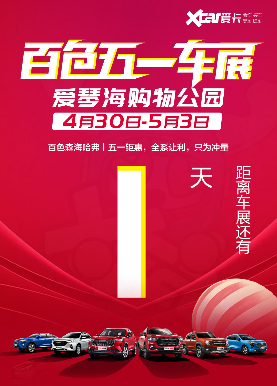 別說我沒有提醒你 如果您還在為買車等一個(gè)時(shí)機(jī) 恭喜你,機(jī)“惠”來了! 哈弗全系車型攜誠(chéng)意而來 百色五一車展 倒計(jì)時(shí)1天,即將開幕 車展時(shí)間 2021年4月30日-5月3日 活動(dòng)地點(diǎn) 百色愛琴海購(gòu)物公園 報(bào)名熱線 0776-2812999、2829998 購(gòu)車時(shí)機(jī)不容錯(cuò)過 車展期間只要您訂任意一款哈弗車型 或者繳納了誠(chéng)意金 就可以參加幸運(yùn)大抽獎(jiǎng)哦! 限量搶購(gòu)8折特價(jià)車 車價(jià)低到讓你尖叫~ |