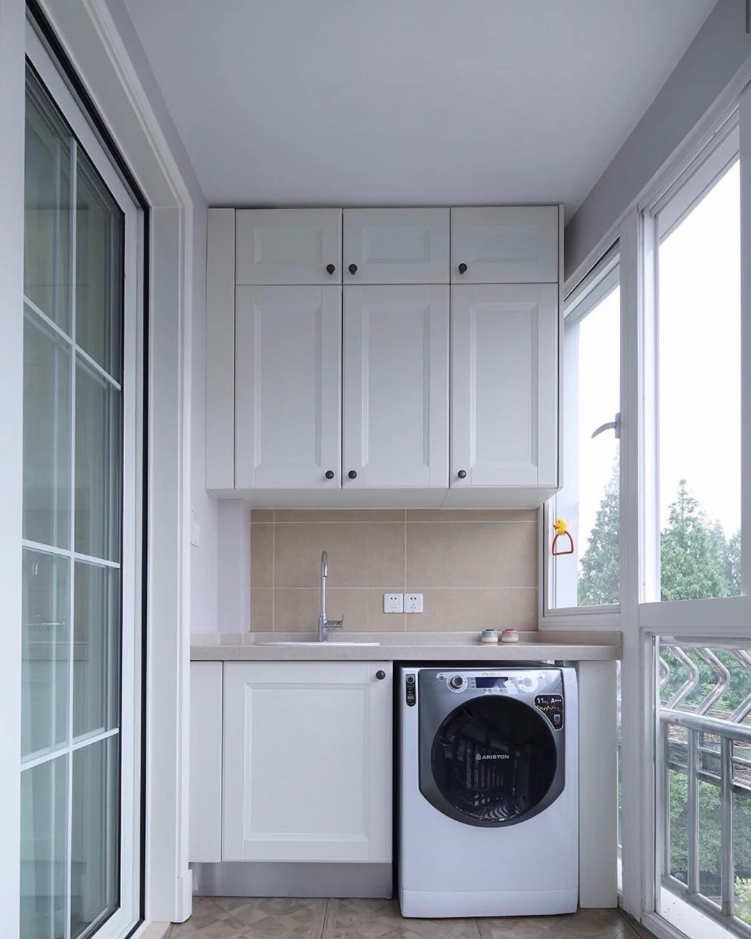 此時(shí)將成品洗衣柜往陽臺一放,就已經(jīng)達(dá)到陽臺使用要求了,其它的就不管了。這樣不僅白白浪費(fèi)了陽臺價(jià)值十多萬的空間,同時(shí)在使用上也并沒有達(dá)到讓生活更加方便。