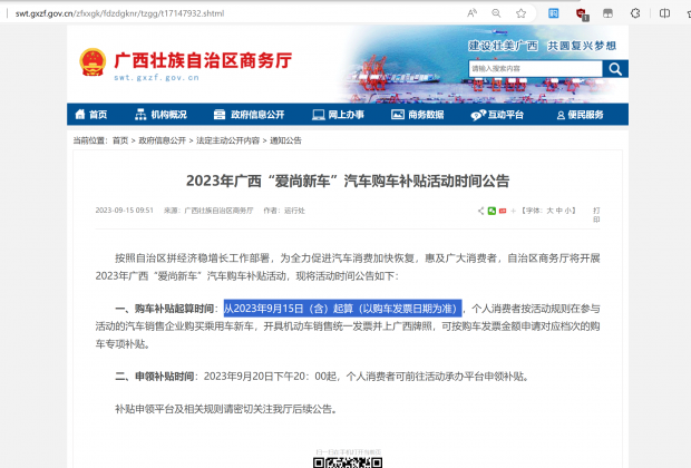 購車補(bǔ)貼起算時間:從2023年9月15日(含)起算(以購車發(fā)票日期為準(zhǔn)),個人消費(fèi)者按活動規(guī)則在參與活動的汽車銷售企業(yè)購買乘用車新車,開具機(jī)動車銷售統(tǒng)一發(fā)票并上廣西牌照,可按購車發(fā)票金額申請對應(yīng)檔次的購車專 ...